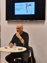 Kai Meyer bekannt durch „Die Seiten der Welt“ war dabei, sein neues Buch zu signieren. Das ist ein Autor, den ich sehr interessant finde.