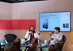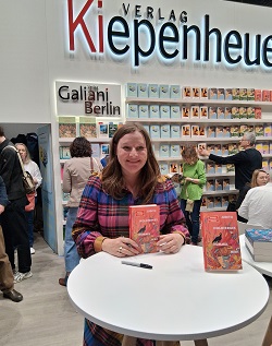 Und bei Kiepenheuer & Witsch durfte am Stand die „Bücherbank“ nicht fehlen, während Judith Holofernes gerade ihr Buch „Hummelhirn“ signierte.