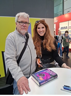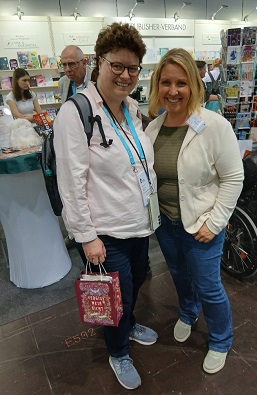 Auch Jane Hell und Sandy Dobelstein, Romanautorinnen aus Schleswig-Holstein, waren auf der Messe mit einem eigenen Stand vertreten, auch hier durfte ein Besuch nicht fehlen.
