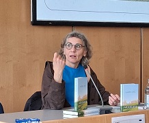 In dem Roman geht es um eine junge Frau, die 1949 zusammen mit 300 anderen Frauen aus Deutschland nach Island kommt, um dort zu arbeiten .In einem fremden Land, dessen Sprache sie nicht spricht. Die Natur, so die Autorin, ist dabei die 2. Person in diesem Buch. Spannend findet sie auch, dass die Natur auf Island noch genauso ist wie 1949 – nur mit Straßen. Und der Boden fühlt sich anders an, als er aussieht. Die Natur muss man dort anders lesen. Eine Umstellung beim Schreiben war auch, dass die Kinder- und Jugendbücher, die sie sonst schreibt, von Dialogen leben, jetzt spricht die Hauptfigur nicht, was das Schreiben veränderte. Auf jeden Fall ein interessantes Buch mit bewegenden Hintergrund.